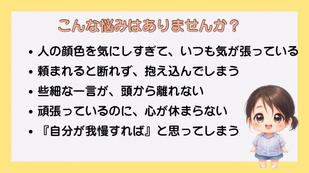 いつも周りの期待に応えようとして、断ると申し訳なくて…気づいたら限界で